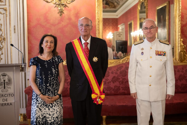 Este jueves 27 de julio, en el Palacio de Buenavista en Madrid, sede del Cuartel General del Ejército de Tierra, la ministra de Defensa Margarita Robles, presidió un acto de imposición de Grandes Cruces al mérito militar y naval con distintivo blanco a cinco civiles, dentro de los que se incluyó al presidente de Fundación Feindef, D. Julián García Vargas.
